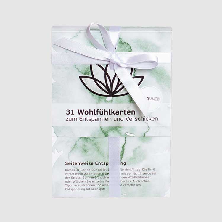 31 cartoline che sono un balsamo per la vita quotidiana. A dicembre, potete contrastare lo stress prenatalizio o fare il regalo del relax agli amanti del benessere. La carta 9, ad esempio, svela qualcosa in più sulla disintossicazione emotiva e la carta 17 fa evaporare lo stress. Regalate un intero mese di benessere o scegliete le singole carte preferite. È anche bello: strappare un consiglio e inviarlo come cartolina. Dopo tutto, il relax fa bene a tutti.