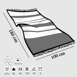 Dieses Hamamtuch aus Baumwolle ist sehr angenehm auf der Haut. Die Grösse ist perfekt, um sich nach dem Saunagang gut einzuhüllen. Dank seiner feinen Art ist das Tuch leicht und einfach zu tragen, ideal für den Einsatz in der Sauna, zu Hause oder auf Reisen. Es trocknet im Handumdrehen und passt problemlos in Ihre Strandtasche.