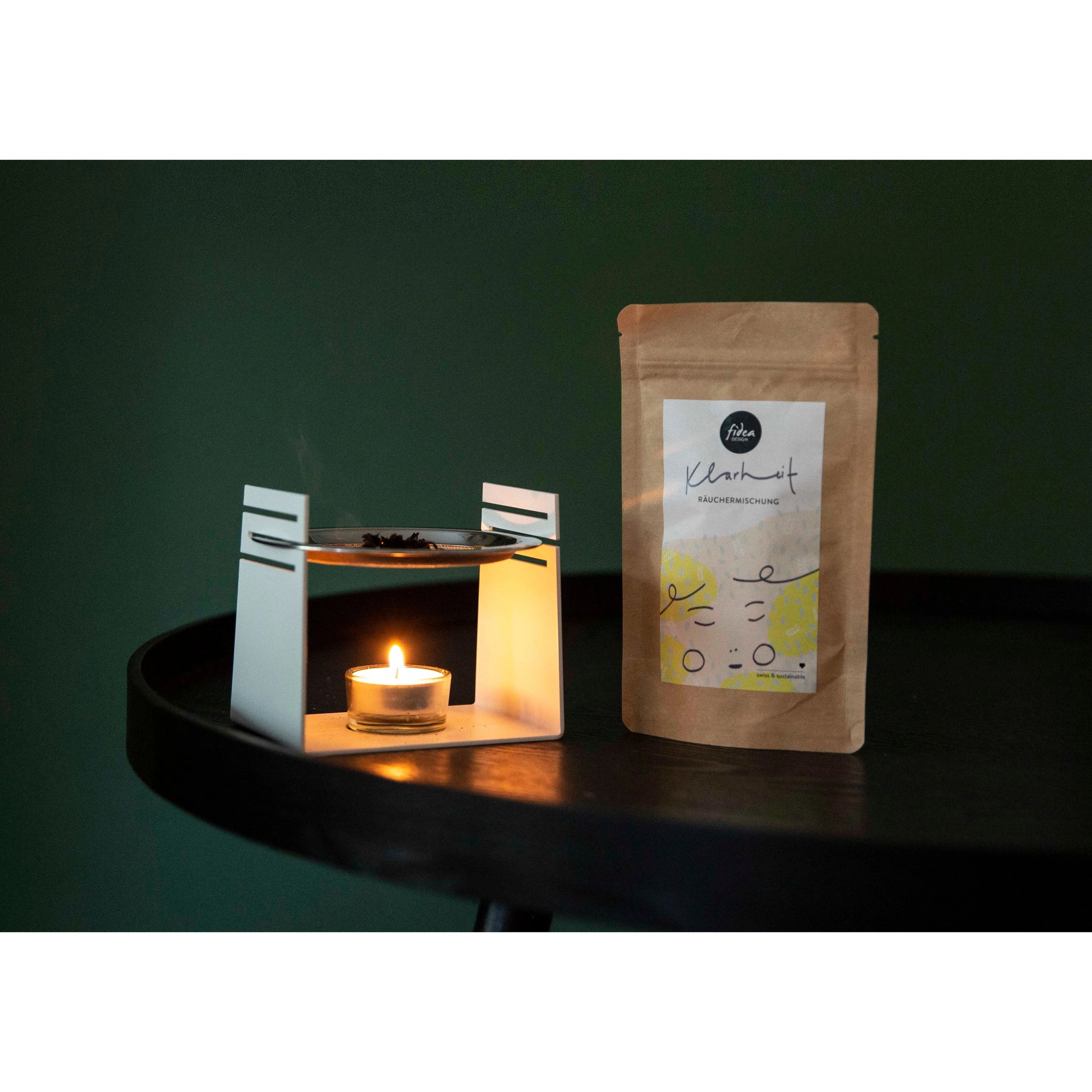 Gemeinsam mit Susana Garcia Ferreira, Expertin für Räucherrituale, hat Fidea fünf ausgewählte Räuchermischungen entwickelt. Jede davon folgt einem eigenen Thema und kann je nach Stimmung oder Bedürfnis eingesetzt werden – auf Räucherkohle oder auf dem Stövchen.