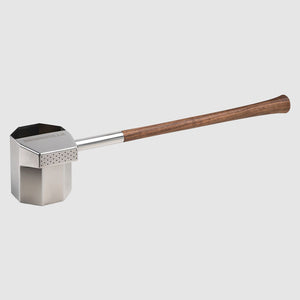 Unsere Regenkelle (0.33 l) hat einen Edelstahl-Kellenkopf und einen Griff aus Nussbaum.