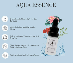 Die Duftnote Aqua Essence sorgt mit Rosa Pfeffer, Bergamotte, Wasserblume, Patchouli und Zeder für Klarheit, Erfrischung und ruhige Momente.